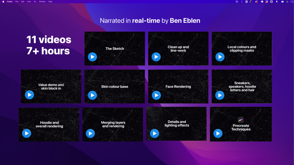 - Procreate techniques video that maps to the ones shown in the walk-through using Photoshop